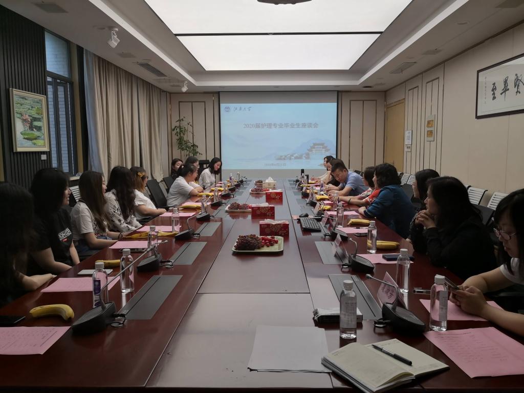 6月21日下午,医学院2020届护理专业毕业生座谈会在C106会议室召开。医学院党委书记向琪、党委副书记副院长奚晓岚、副院长赵鹏、院长助理护理系主任蒋玉宇、附属医院(三院院区)护理部主任华皎、附属医院(四院院区)护理部主任赵杰、毕业班班主任夏淑芳、护理系教师代表柳丰萍、护理系教师代表邵靖、医学院教学秘书及护理16级陈海琳等十名毕业生代表等参加了会议。会议由院长助理护理系主任蒋玉宇主持。