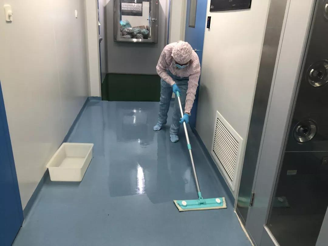 (医学院实验室负责人进行实验室卫生清洁和消毒)