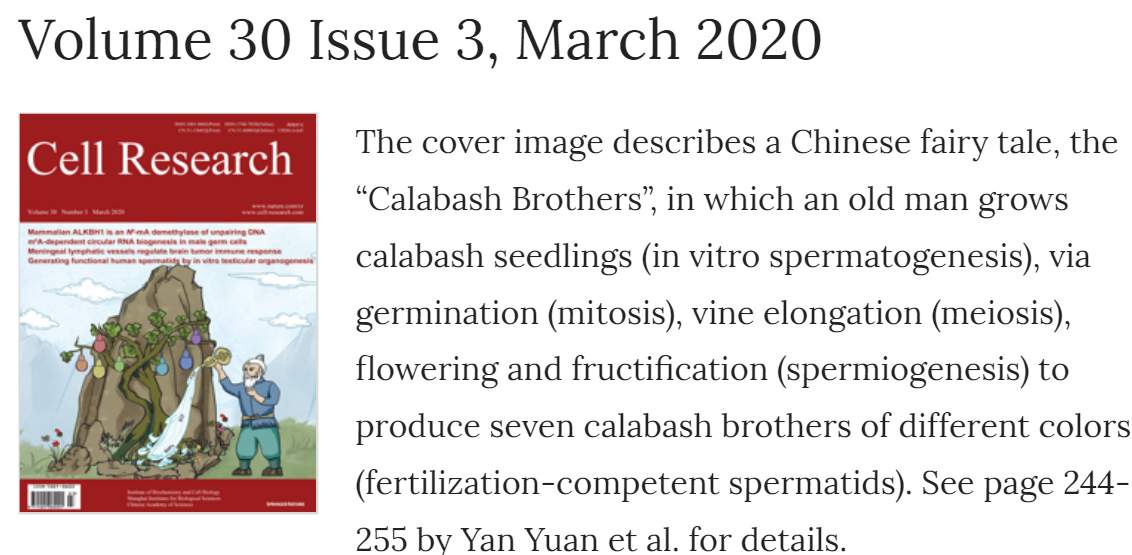 附属医院教师袁艳与南京医科大学沙家豪教授课题组、中国科学院动物研究所周琪教授课题组合作,在人类生殖细胞体外减数分裂形成配子方面取得重大进展。研究成果于2020年2月21日以封面文章形式在《Cell Research》上发表,题为《In vitro testicular organogenesis from human fetal gonads produces fertilization-competent spermatids》。