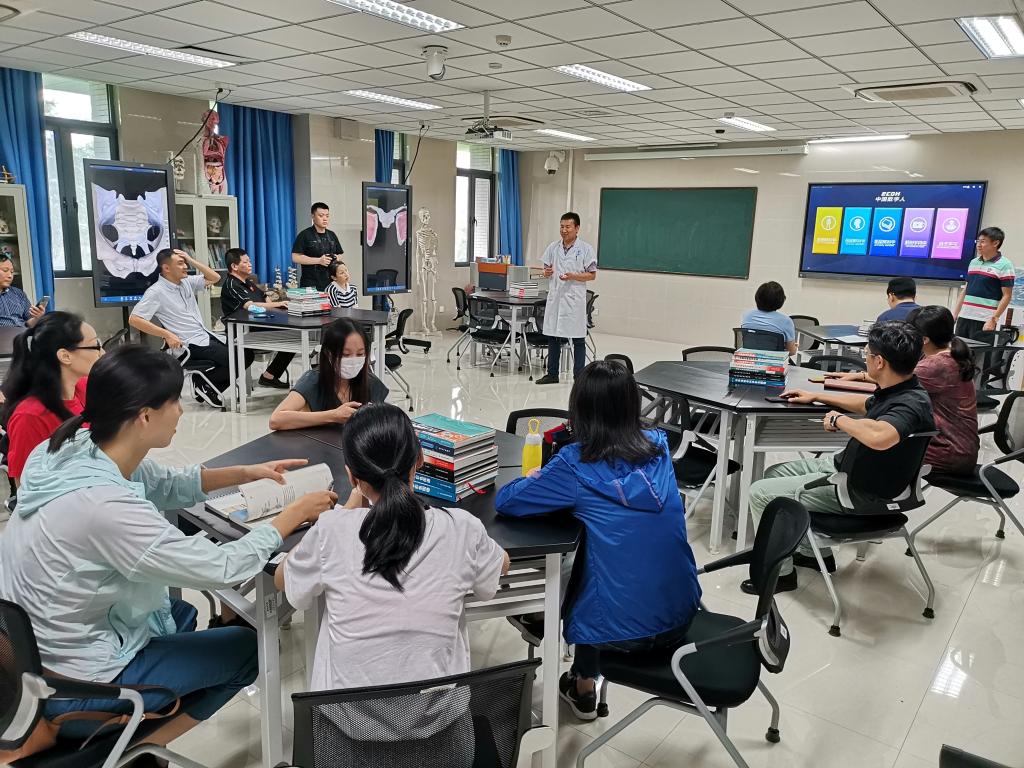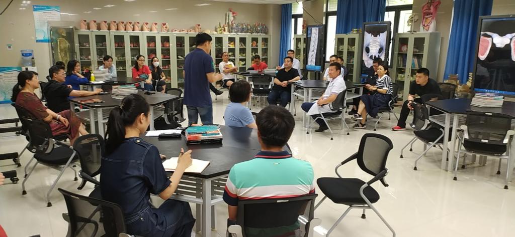 人体科学馆后,大家在医学院D栋大楼人体解剖学实验室开展了热烈讨论:首先每位老师结合各自的专业特长进行自我介绍,然后就《体育健康学》《运动解剖学》等学科交叉课程的教学内容设计、教学方法、教学特色进行了广泛讨论,为课程教学大纲的制订和课程建设提供了框架方案。