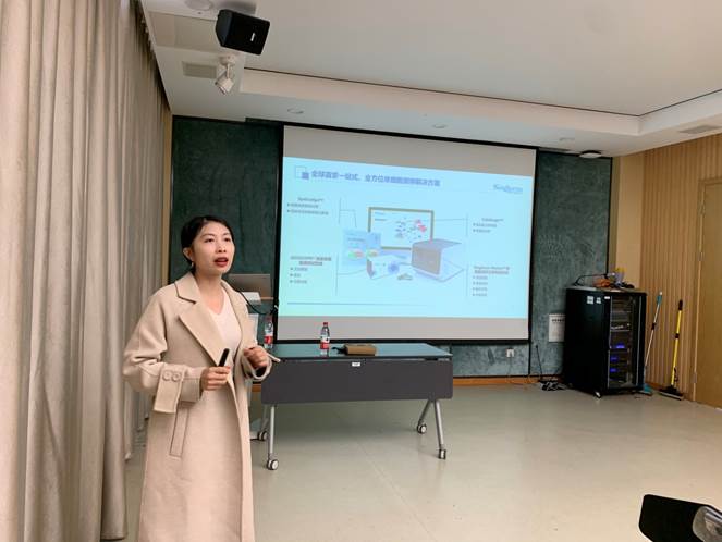 在讲座中,技术专家高美云从什么是单细胞测序技术、为什么用单细胞测序技术、单细胞测序技术的科技突破与应用领域以及单细胞测序技术的基本原理与发展现状等方面向老师与同学们作了简单介绍。技术专家周运来以单细胞测序指导肿瘤精准医疗为主题,从单细胞测序揭示肿瘤微环境、单细胞临床数据库以及单细胞多组学技术服务内容等方面作了详细介绍。随后,老师、同学们与技术专家进行了积极的互动交流。