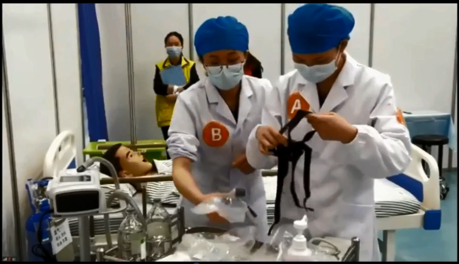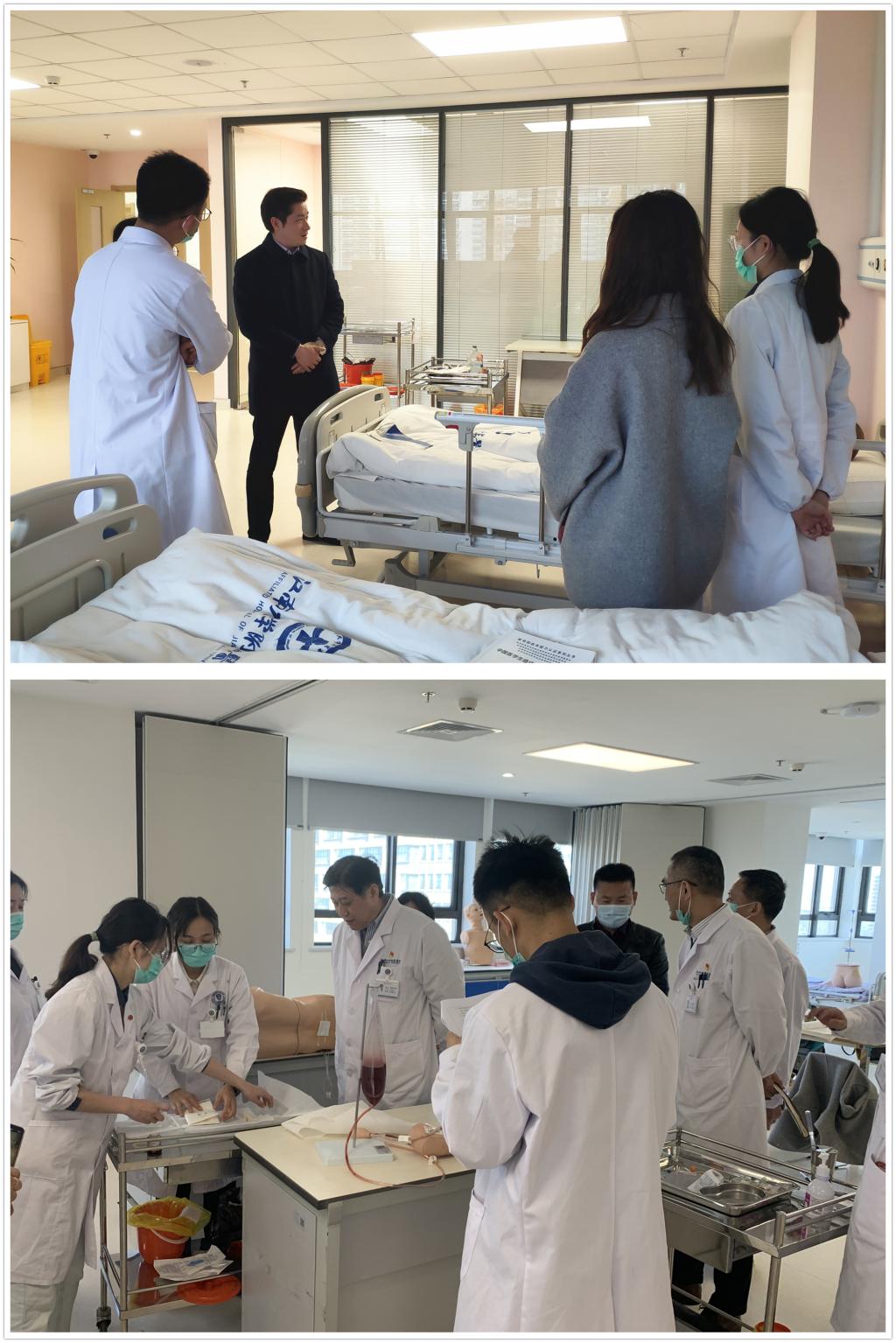 医学院院长马鑫和附属医院院长鲁晓杰观摩选手培训