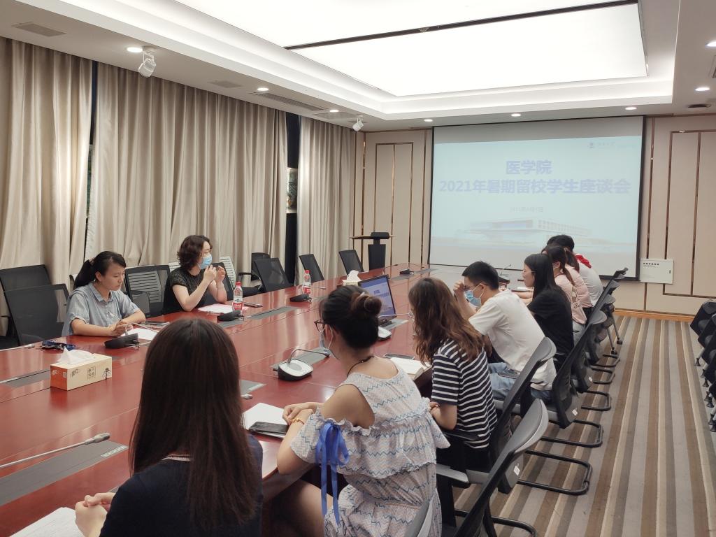 8月4日-5日,医学院学生工作组通过走访学生宿舍、召开座谈会等形式对疫情期间留校学生的学习、生活状态进行了调研。医学院党委副书记、副院长奚晓岚,分团委书记陈碧云与留校同学面对面,了解同学们的思想动态和身心状况,听取同学们的意见和建议。