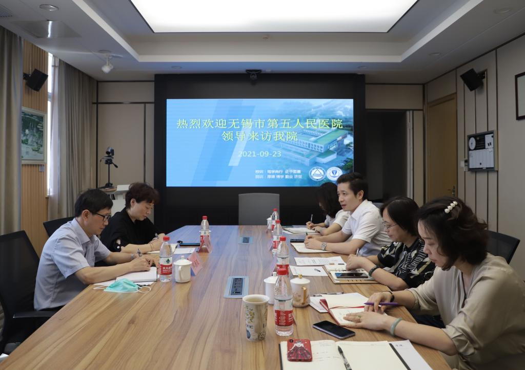 9月23日上午,无锡市第五人民医院副院长邱源旺、科教科科长陆雁等来院交流。医学院党委书记向琪、院长马鑫,党委副书记兼副院长奚晓岚、转化医学研究院副院长兼医学院副院长包羽等参加会议。
