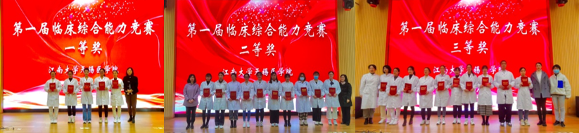 竞赛针对不同阶段学生的培养要求和学习内容,开展多种形式的竞赛。研究生一年级学生以小组合作的形式进行,现场随机分组,每组有15分钟的时间互相熟悉和分配任务,考核学生的团队合作精神和临场应变能力。考核采用多站的形式,分别是评估和诊断站(含体格检查和护理诊断,两人负责)、护理计划站(一人负责)、护理措施站(两人负责),共计五站。研究生二年级和三年级的学生提前进入分配好的科室,确定护理查房病例,并收集相关资料。随后与所在科室考官约定时间完成床边护理查房,考官对学生从病情观察、体格检查、沟通交流、健康教育等方面的能力进行考核,并针对存在的问题进行现场点评分析。学生根据护理查房病例完成一份护理计划,由各科室考官集中评审。赛后,各赛道分别评出各等奖项,并由医学院护理系系主任蒋玉宇老师、附院陈静护士长等为获奖学生颁奖,并表示祝贺。