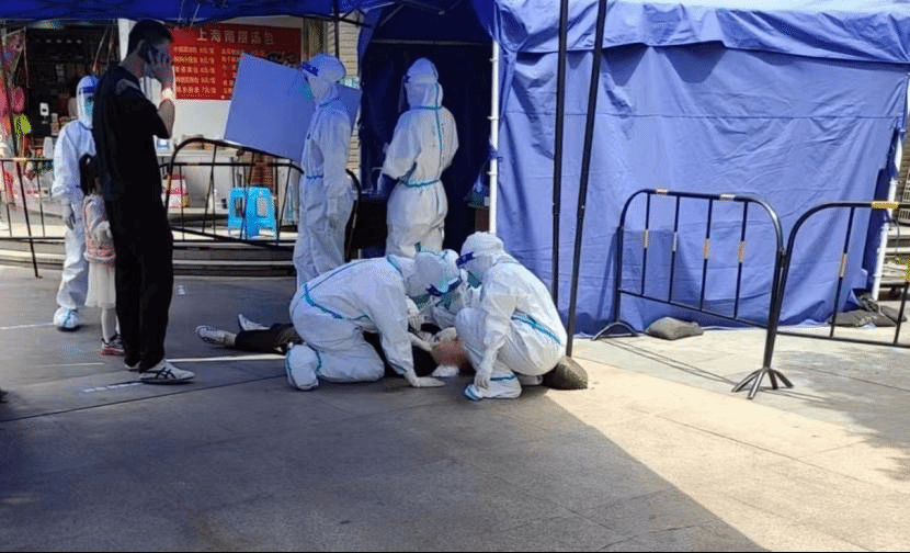 抗疫采样队员正在昆山市高新区大学园区社区开展核酸采样工作,当日天气炎热,参加测核酸的群众很多,这时突然有一名12岁的女孩晕倒,离其最近的4号采样点98堂