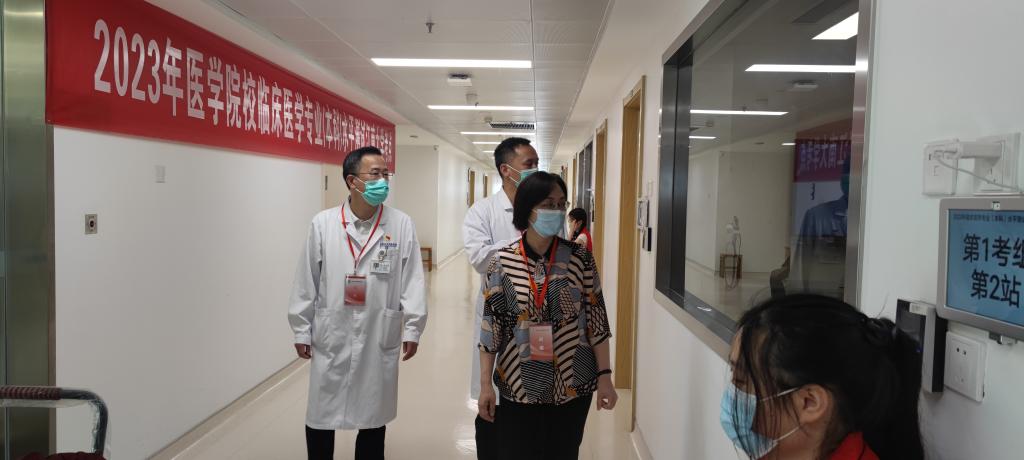 医学院党委书记向琪和附属医院副院长陆华巡视技能考试考场