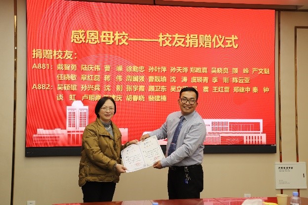 捐赠20万元整。向琪书记为校友们颁发捐赠证书,感谢校友们对98堂