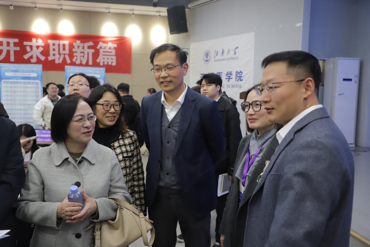 6家附属医院、扬子江药业等医药企业20余家用人单位的负责人与校方围绕“人才培养精准对接地方和产业需求”、“校企协同共谋产教融合”、“访企拓岗拓宽就业路径”等主题展开深入探讨,双方共谋产教融合新路径,共绘协同育人新蓝图。