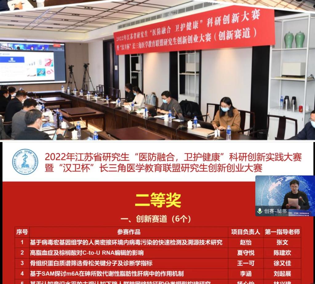 省研究生科研实践比赛决赛作品模拟赛是学院为备战江苏省研究生“医防融合、卫护健康”科研创新实践大赛进行的热身训练。在过去一年,学院针对研究生参与科创活动作出了一系列激励举措,包括自设院级科创项目,增加对科研立项课题的资助等。今年江苏省教指委的科创比赛通知一经发布,同学们报名踊跃,共申报作品36件。经过主办单位为期一个月的初赛,共有4件作品进入决赛。12月14日,学院统一组织校内外专家对作品进行专题评审,模拟决赛流程,进行陈述和问答,提出修改建议,有的放矢地帮助大家更好的提高作品质量,也向其他参赛师生进行展示,交流经验。12月18日,正式决赛拉开帷幕,经过精心的汇报展示和激烈的投票角逐,我院作品荣获省赛创新赛道二等奖一项、创新赛道三等奖两项、科普赛道三等奖一项,并获优秀组织奖。