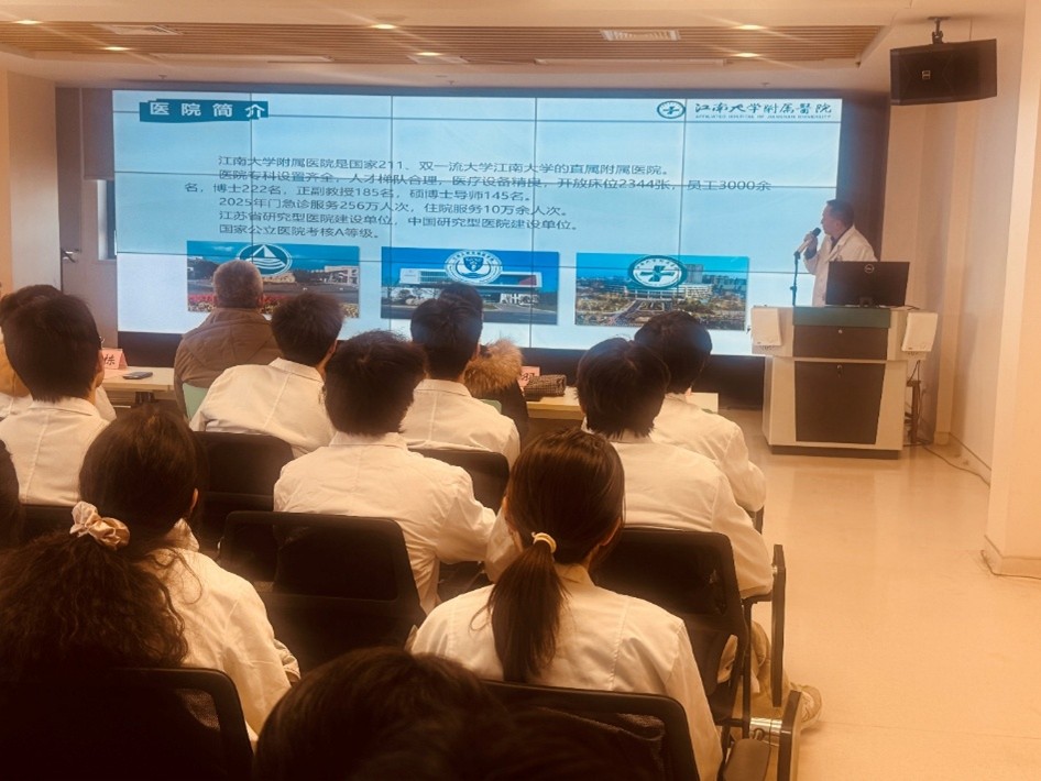 医院教育处对此次仪式给予了高度重视,精心部署。峁勇对同学们的到来表示热烈欢迎,附属医院是同学们将理论知识与临床实践深度融合的“练兵场”,是感悟医者仁心、锤炼临床思维的“大熔炉”,更是从医学生向准医生角色转变的关键起点;希望同学们能尽快融入98堂